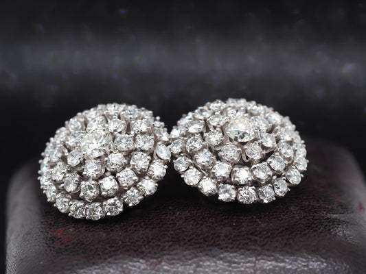 Circa 1940s Platinum Old European Diamond Cluster Earrings - VHK#261a