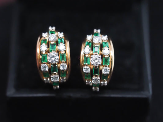 Vintage Oscar Heyman 18K Yellow Gold and Platinum Diamond Emerald Earrings