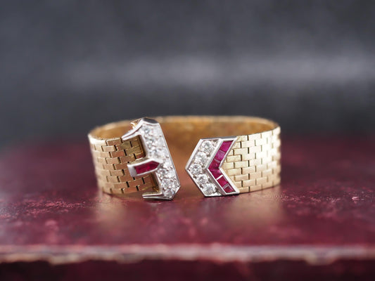 Retro Vintage Tiffany & Co. 14K Yellow Gold Ruby & Diamond Adjustable Belt Ring