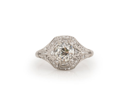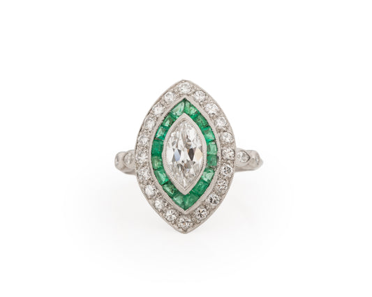 Circa 1920s Carved Emerald Flower Ring in 18K Gold