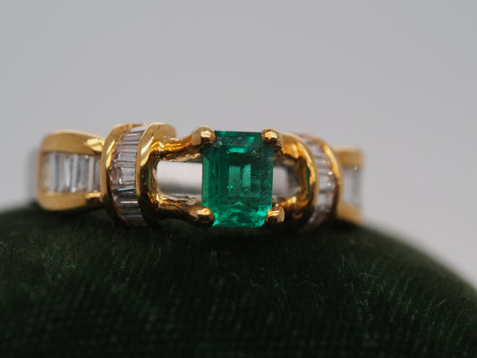 Circa 2000s Damas Jewelry Marquise Emerald and Diamond Ring in 18K White Gold