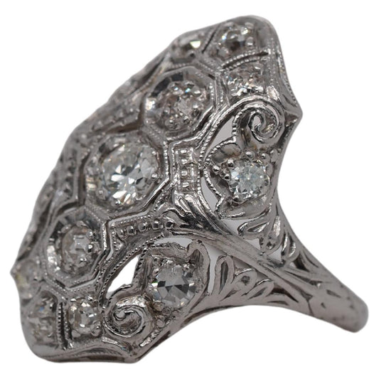 Circa 1920s Art Deco Geometric Diamond Ring in 14K White Gold