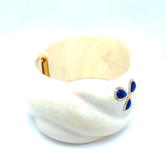 Circa 1960s Resin and Lapis Lazuli Hinged Bangle with 14K Gold Accents
