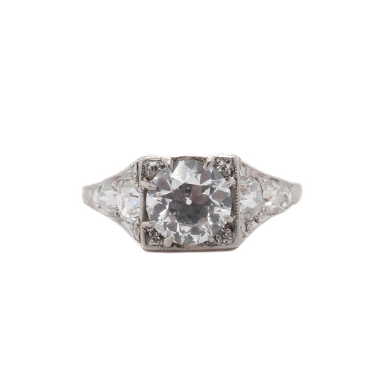 Estate Emerald and Diamond 1940s Earrings in Platinum