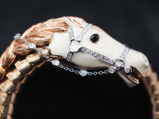 18K Yellow Gold Diamond and Enamel Roberto Coin Equestrian Horse Bangle