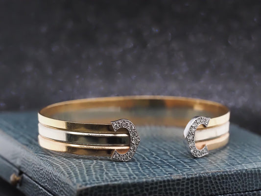 Vintage Cartier Tri Color C Cuff Bangle with Diamonds - VHK#263a