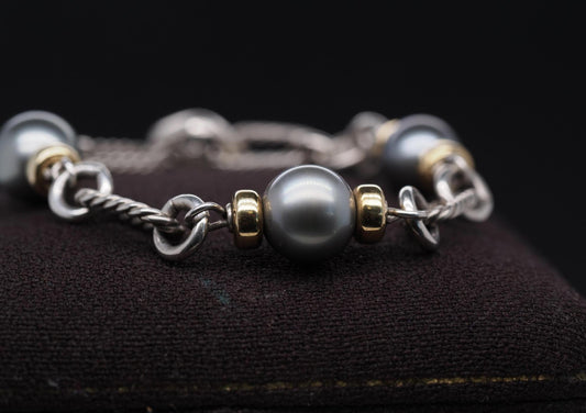 David Yurman 18k & Silver Madison Pearl Link Bracelet - VHK#203