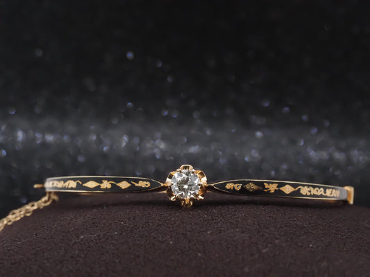 Estate Edwardian 14K Yellow Gold Old European Diamond and Enamel Bangle - VHK#73