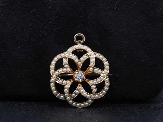 Estate Edwardian 14K Pendant and Brooch with Old Mine Diamond and Pearls - VHK#670b