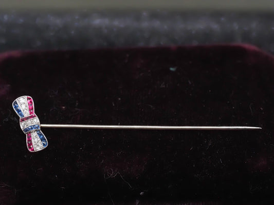 Estate Arto Deco Platinum Ruby, Sapphire & Diamond Stick Pin - VHK#989