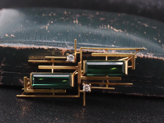 Estate Vintage 18K Yellow Tourmaline and Diamond Brooch - VHK#992