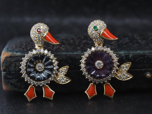 Estate 18K Yellow Gold HAMMERMAN Brothers PAIR of Duck Brooches - VHK#986