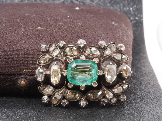 Estate Victorian Drop Emerald and Diamond Royal Brooch