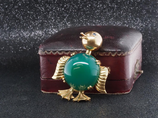 Vintage 18k Yellow Gold Sapphire and Chrysoprase Duck Brooch
