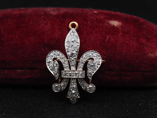 1892 18K Gold and Platinum Fleur-De-Lis Pendant and Brooch, Signed with Date