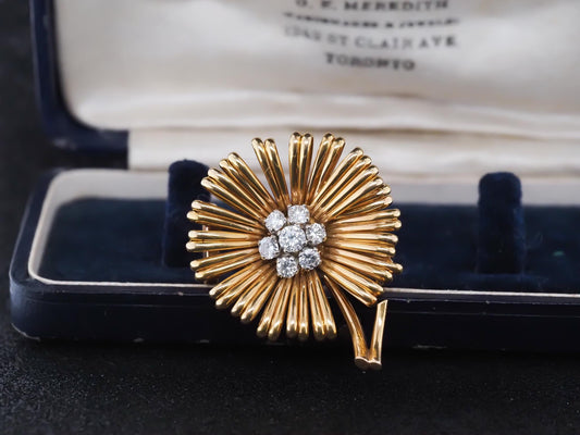 Van Cleef & Arpels 18K Yellow Gold and Diamond Flower Brooch