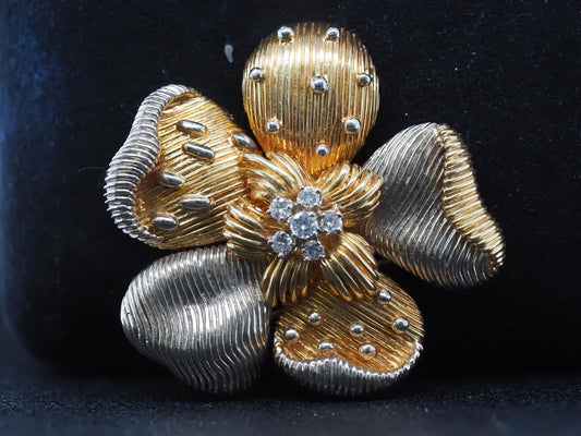 Cartier Two Tone 18K Gold and Diamond Flower Brooch