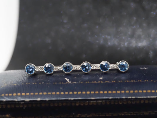 Estate Art Deco Platinum YOGO Sapphire and Diamond Line Brooch