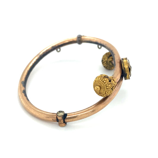 Circa 1880s Hinged Baby Bracelet with Red Gemstone in Rose Gold Fill