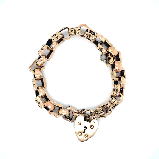 Edwardian Link Charm Bracelet with Heart Lock Charm in 9K Rose Gold