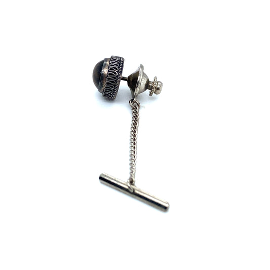 Circa 1910s Tiger's Eye Tie Tack in 950 Silver