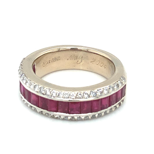 Circa 2000s Ruby and Diamond Band Ring in 18K White Gold