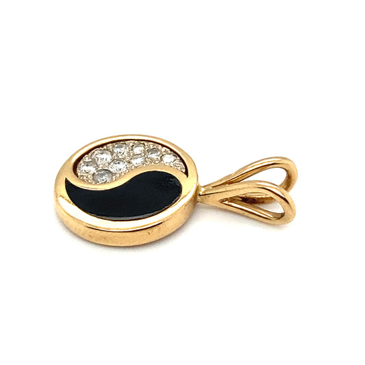 Hawaiian Black Coral and Diamond Yin-Yang Pendant in 14K Gold