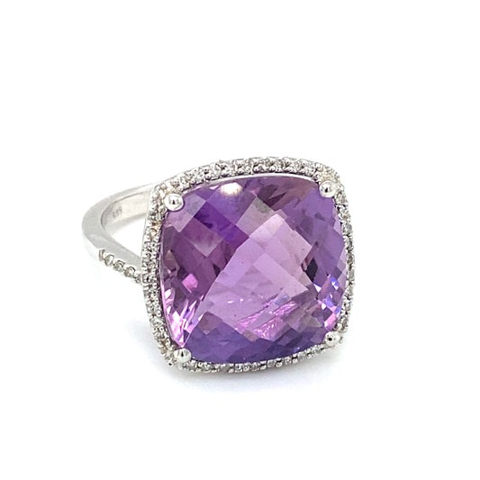 Circa 2000s 8.0ct Amethyst and Diamond Cocktail Ring in 14K White Gold