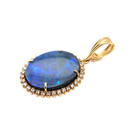 Circa 2000s Oval Opal Doublet Pendant with Diamonds in 14K Gold