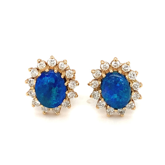 Circa 2000s Opal Doublet Stud Earrings with Diamonds in 14K Gold