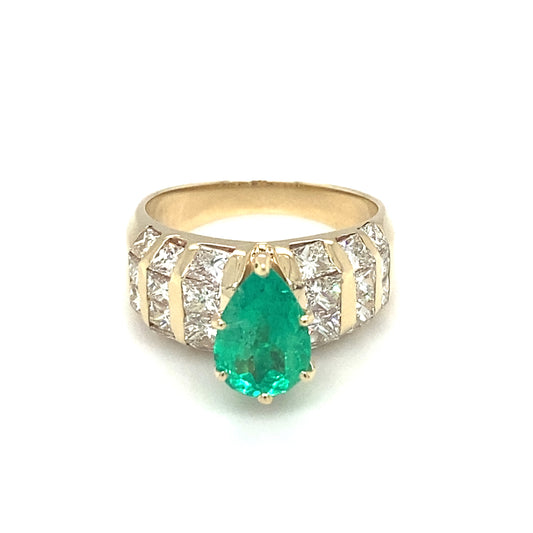 Circa 1990s 1.50ct Pear Cut Emerald and Diamond Ring in 14K Gold