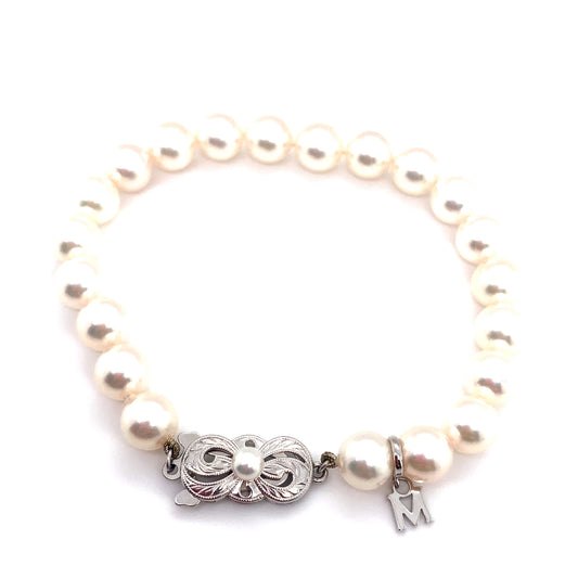 MIKIMOTO Akoya Pearl Bracelet with M Charm with 18K White Gold Clasp
