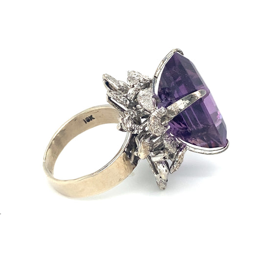 Retro Style 8.0ct Amethyst Cocktail Ring in 18K White Gold