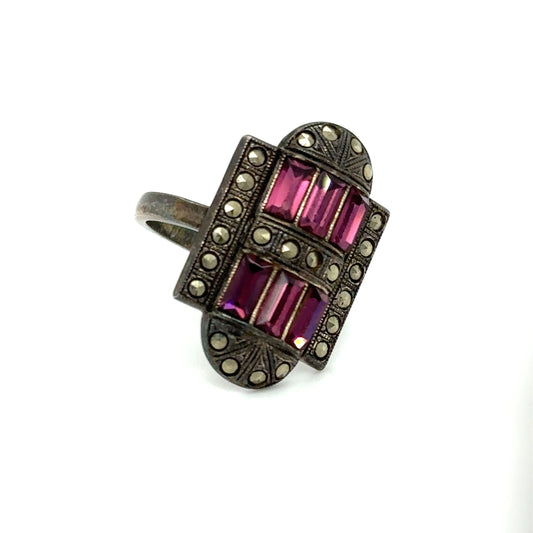 Art Deco Style Marcasite and Amethyst Ring in Sterling Silver