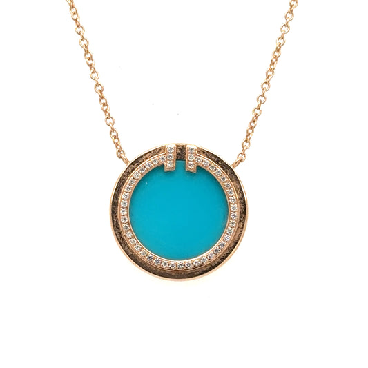 Tiffany & Co. T Turquoise Pendant with Diamonds in 18K Rose Gold