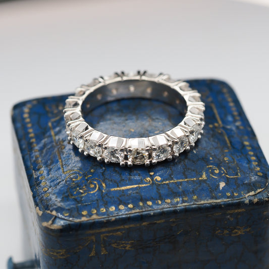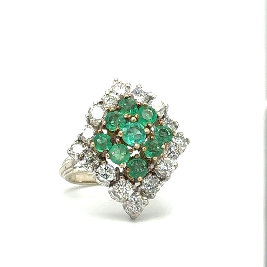 Circa 1950s Retro Emerald and Diamond Cocktail Ring in 14K White Gold