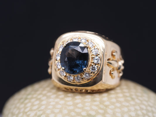 14K Fleur De Lis Mens Diamond and Spinel Ring