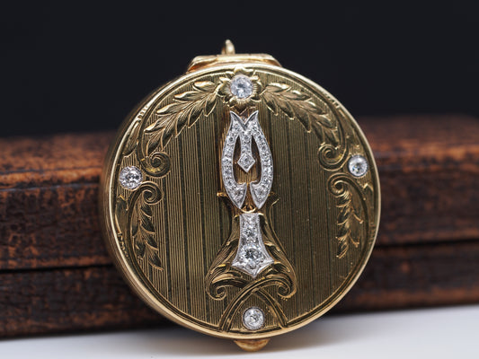 14K Yellow Gold Edwardian Pill Box Pendant with Diamonds