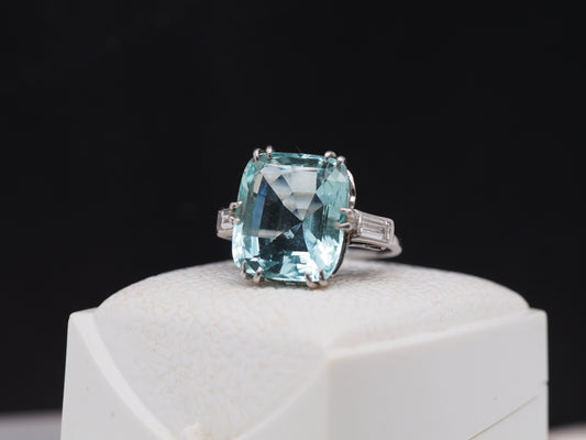 Circa 1940s Platinum Art Deco Aquamarine Ring