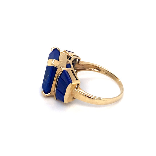 Circa 1950s Retro Lapis Lazuli Cocktail Ring in 14 Karat Gold