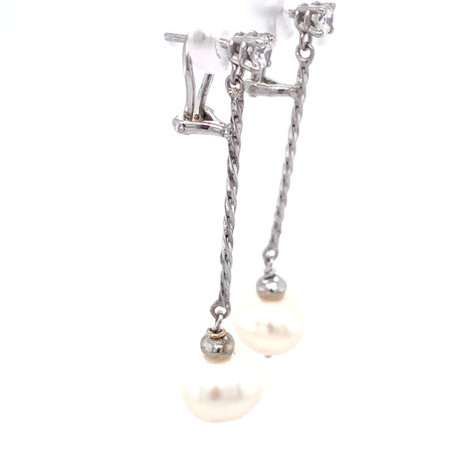 Circa 1980s 0.50 Carat Diamond Drop Earrings with Pearls in 14K White Gold