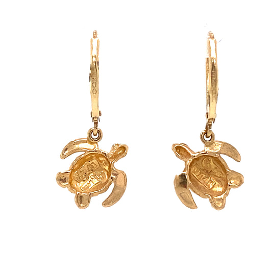 Circa 1990s Lever Back Sea Turtle Dangle Earrings in 14K Gold