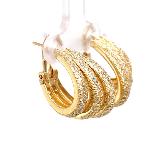 Circa 1980s 1.0 Carat Pavé Diamond Three Row Graduated Hoop Earrings in 18K Gold