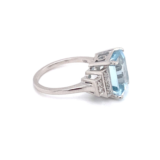Circa 2000s 5.28 Carat Aquamarine and Diamond Ring in 18k White Gold