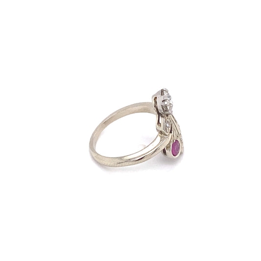 Circa 1920s 0.50 Carat Diamond and Ruby Ring in 14K White Gold
