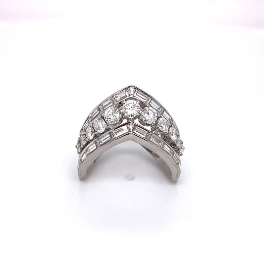 Circa 1980s 2.0 Carat Round and Baguette Diamond V Ring in Platinum