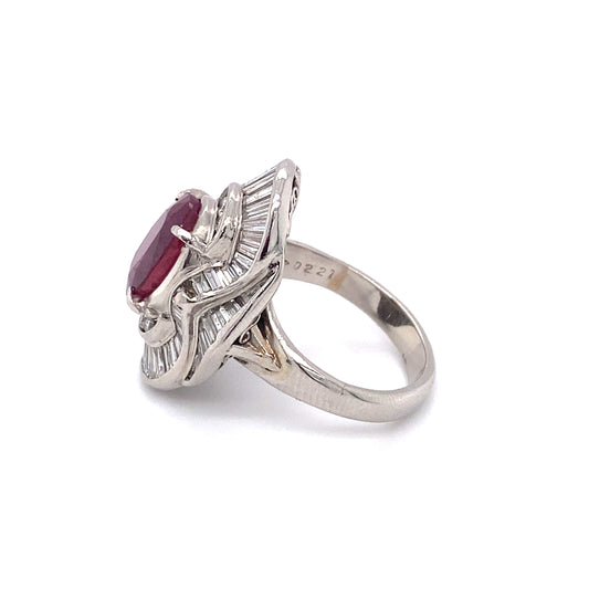 Circa 1980s 5.96 Carat Ruby and Diamond Cocktail Ring in Platinum