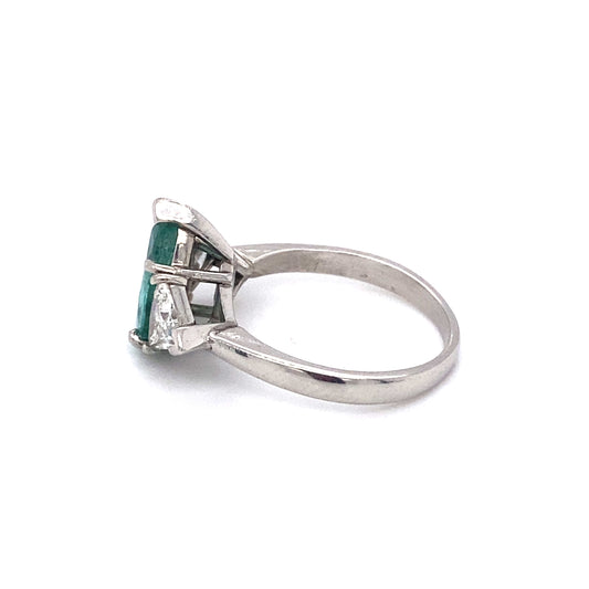 Circa 1980s 1.50 Carat Pear Cut Emerald and Diamond Three Stone Ring