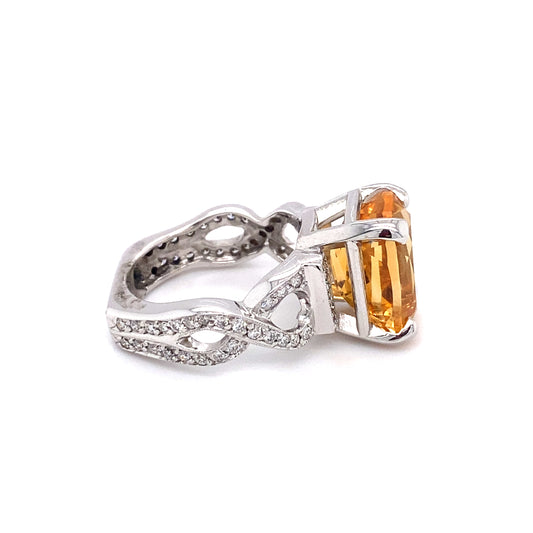 Circa 1980s 6.0 Carat Citrine and Diamond Ring in Platinum and 18K White Gold
