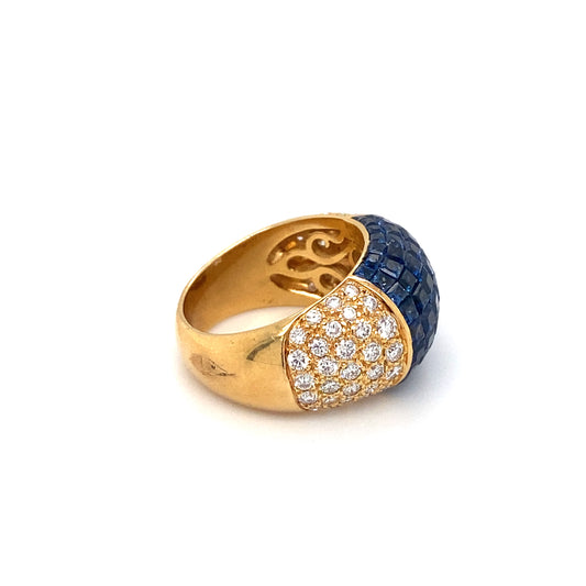 Circa 1980s Invisible Set Sapphire and Diamond Dome Ring in 18K Gold